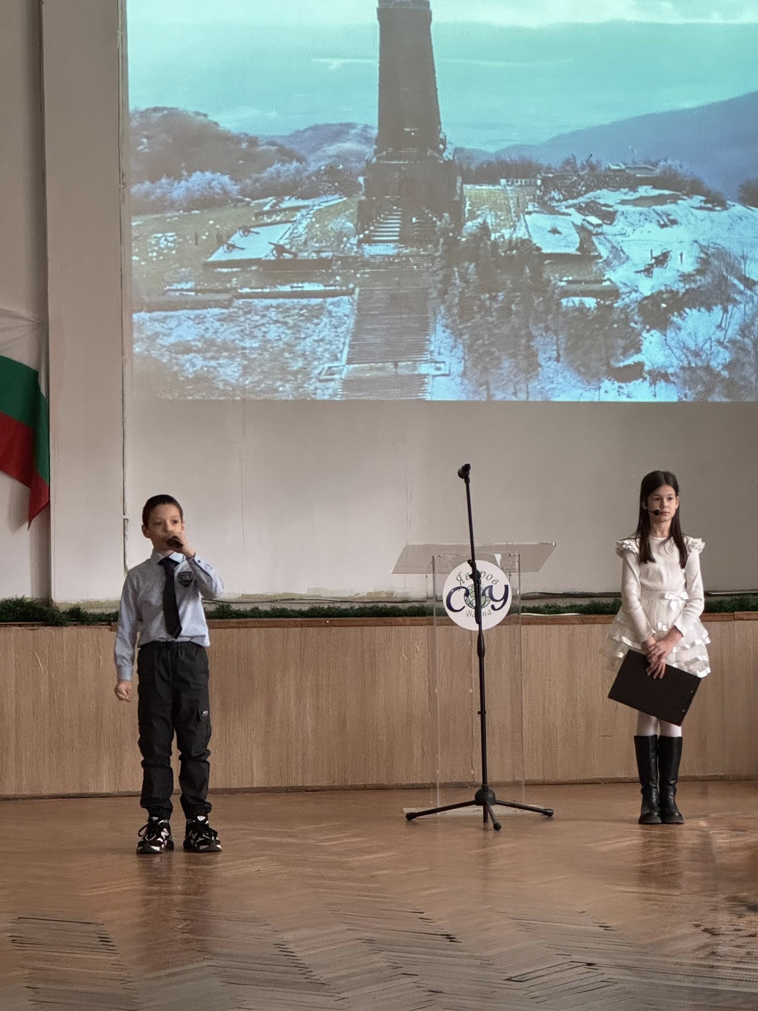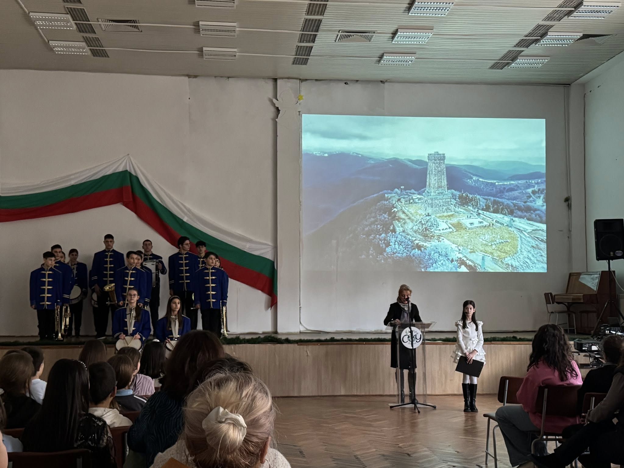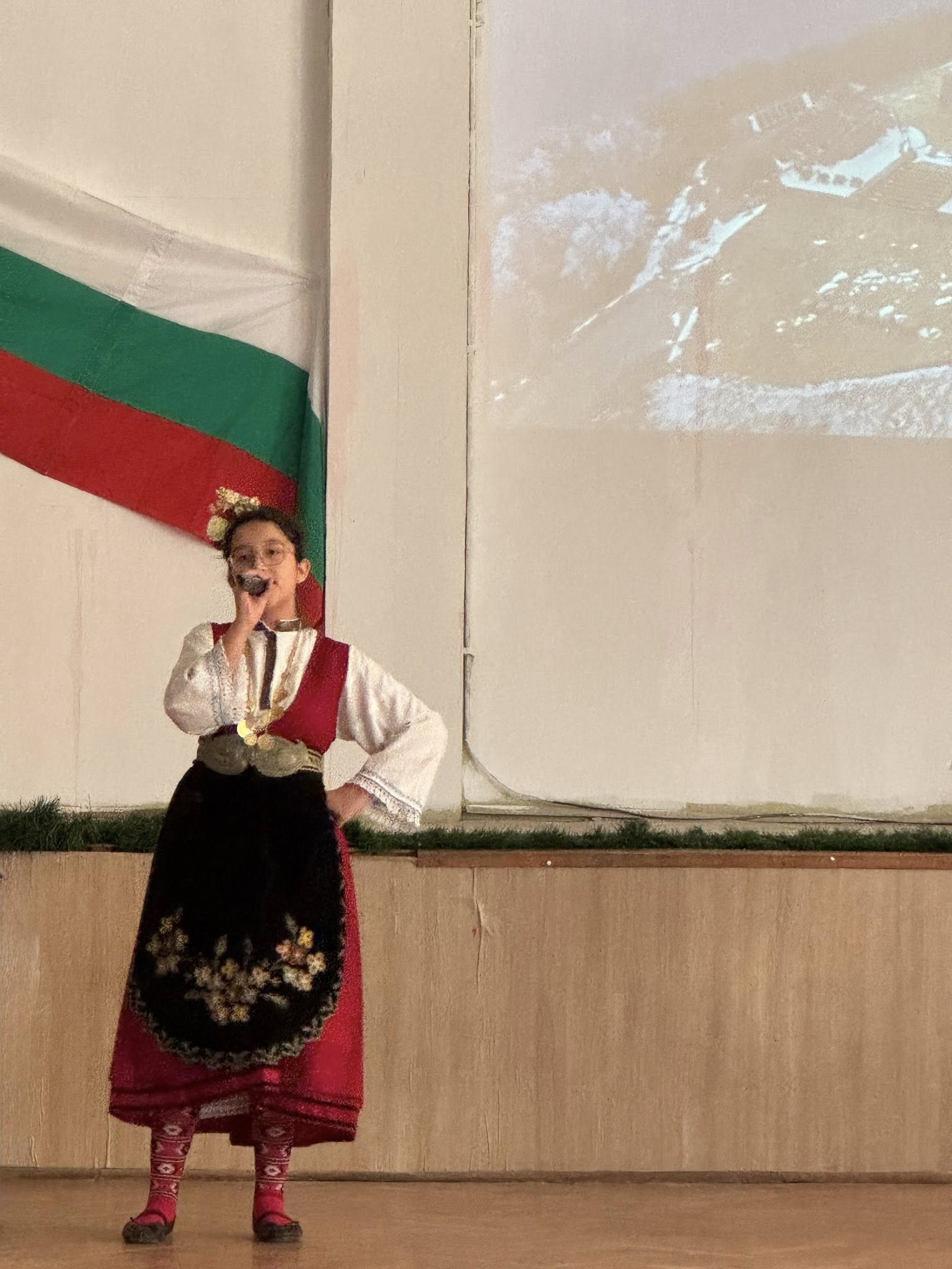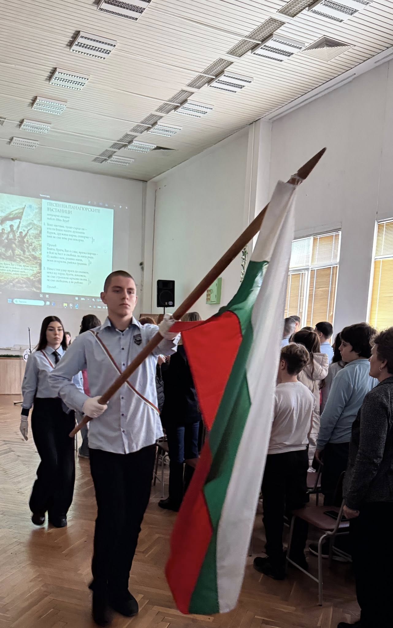 Празничната програма започна с церемониално внасяне на знамето на Република България – тържествен и дълбоко вълнуващ момент, който изпълни всички присъстващи с гордост и признателност. В залата настъпи тишина, а погледите бяха насочени към трибагреника – символ на единството, достойнството и надеждата на българския народ.