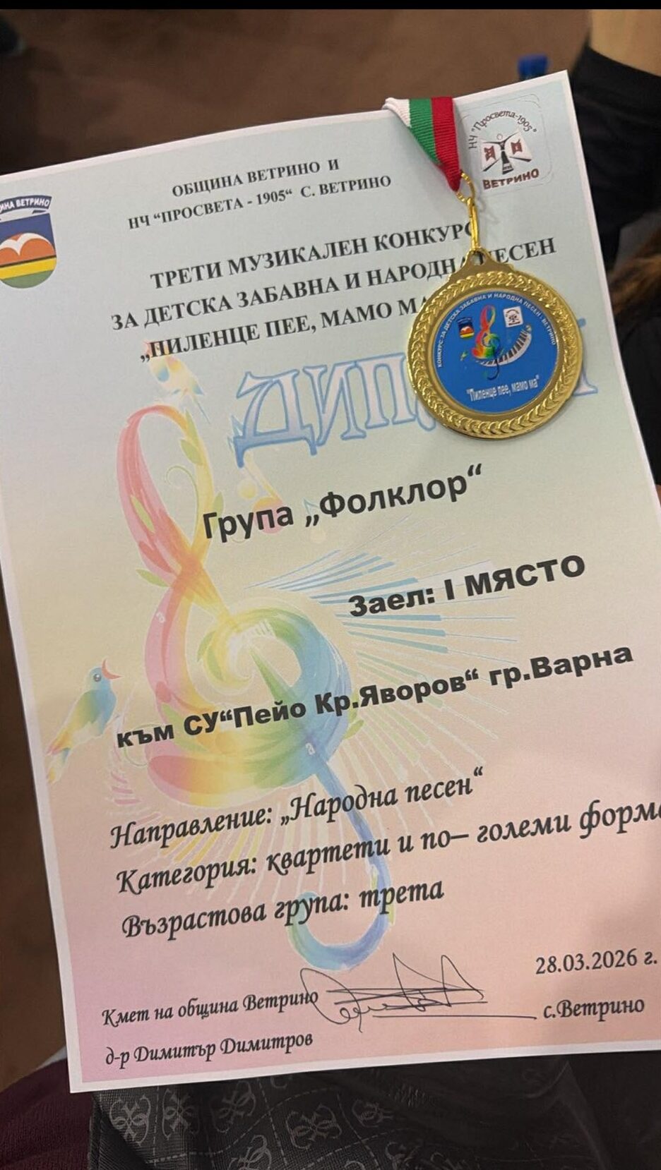Конкурс “ Пиленце пее мамо ма” 2026 – Ветрино