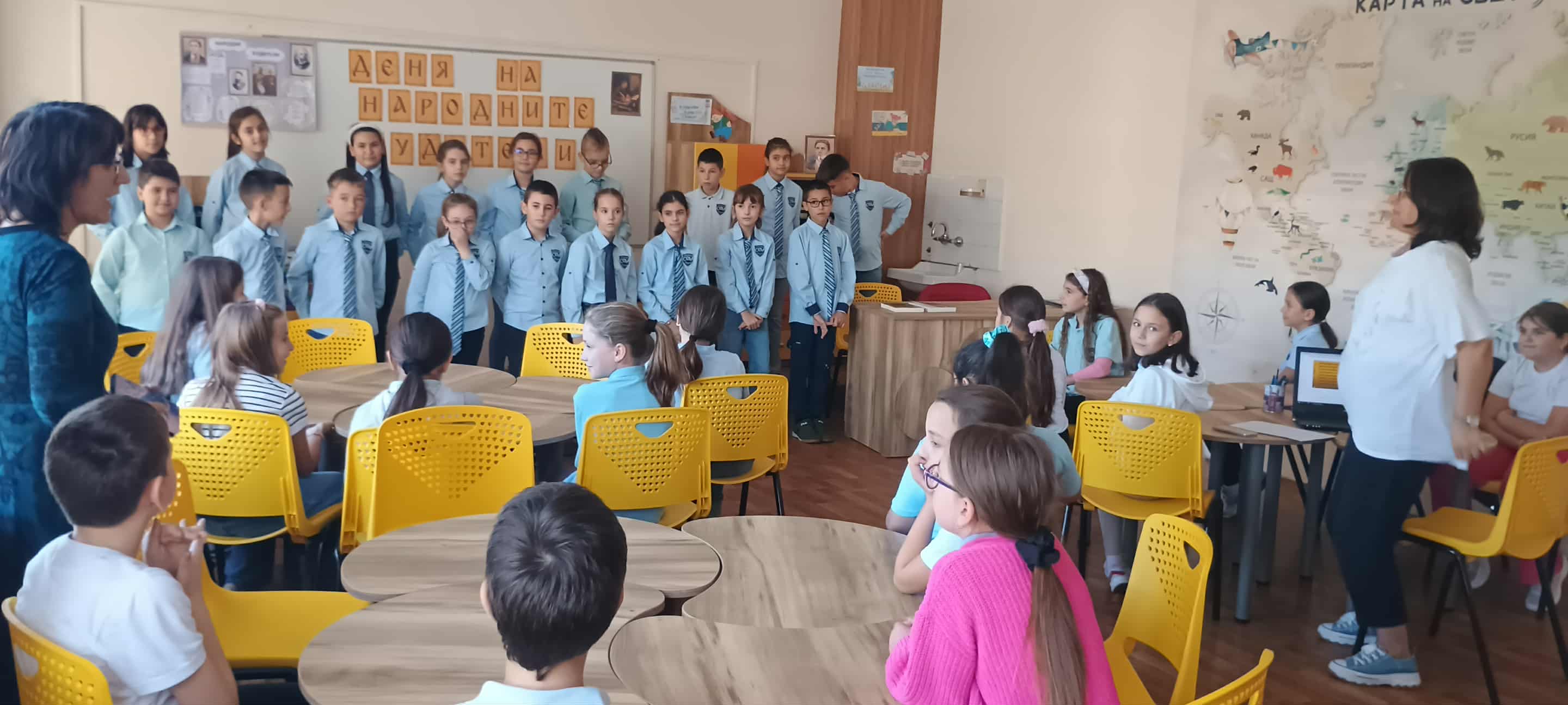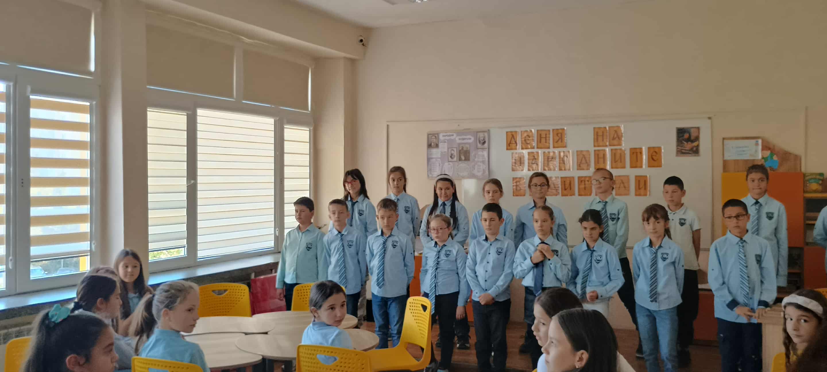 В навечерието на един от най-българските празници на духовността - 1 ноември - Ден на народните будители, учениците от 4а и 4б клас в СУ "П. Яворов" почетоха делото на велики българи с празнична програма. С много вълнение участниците изпълниха стихотворения и песни, посветени на пазителите на българската просвета и борците за свобода. Тържеството завърши с поздрав към първите учители в училище